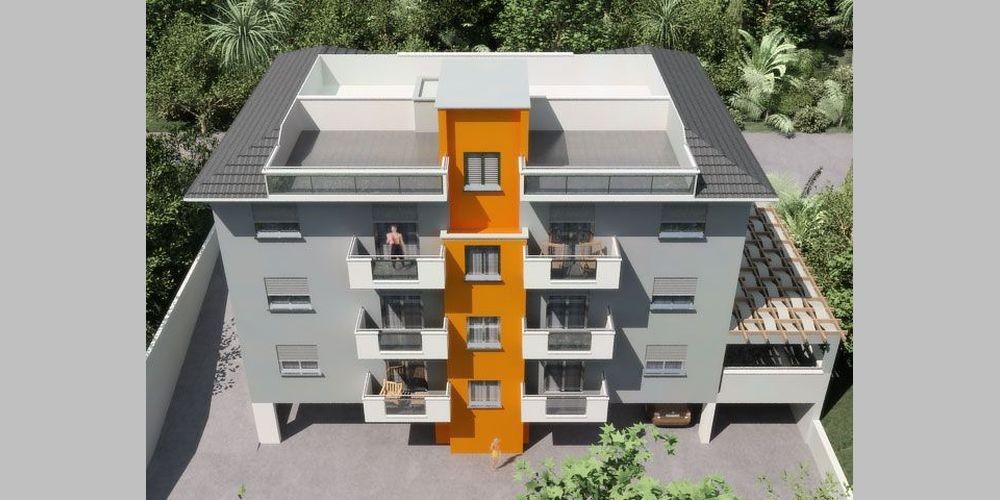 The three-storey building incorporates 6 apartments – each one is two-bedroom. There are two apartments per each floor.