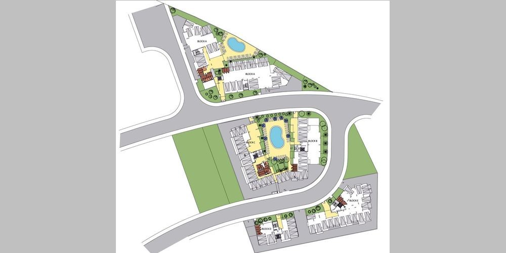 All the houses are elevated on pillars, providing thus for parking places for cars of all the residents. There are two large swimming pools in the complex yard.