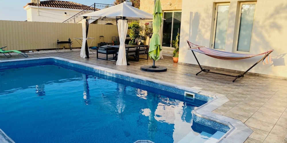 This bungalow is set on a spacious 820m² plot and offers everything needed for comfortable living. The property features a private 4x8m swimming pool, full central heating, and air conditioning. It is equipped with a pressurized water system and double-glazed windows, while a marble staircase leads to a charming roof garden, perfect for enjoying scenic views. Conveniently located, it is just a 15-minute drive to Limassol and 35 minutes to Paphos. Title deeds are available, ensuring a secure and seamless purchase.
