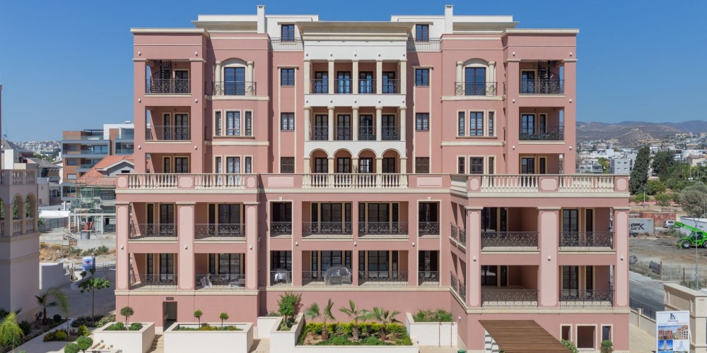 Club-style Kensington Residences complex is executed in classical colonial style of Cypriot/European architecture. The facade is elaborately decorated with columns, balustrades, window/door frames, and decorative elements made of natural stone. Open balconies are closed in with handmade railings made of wrought iron. The side supports of balconies are made in classical style and are an intrinsic ornament of the whole building. Both semi-circular bay windows and a massive pediment accentuate elegance of the composition. The project is located in the calm geographical center of Limassol and one of the most prestigious housing areas of the city, that is located within walking distance from Dassoudi (one of the best Limassol beaches), and 250m from the seaside road. It is a very special place in Limassol, where both eucalyptus and pine trees groves stretch for 1.5 km along the beach and create a rare and very healthy microclimate, an ideal place for leisure and sport activities.