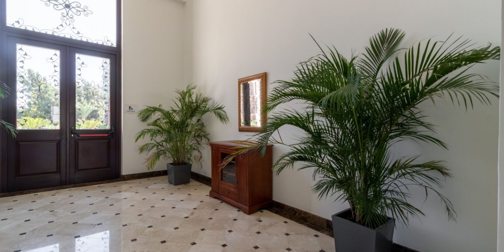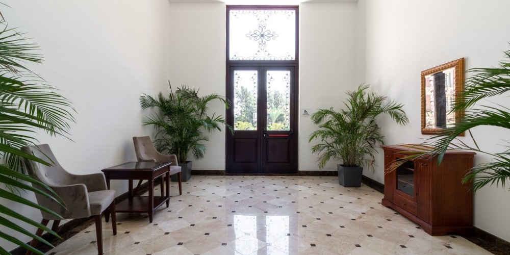 - Elaborately finished front entrance. Expensive marble, beautiful chandeliers and furniture. Classical music plays at the entrance of the lobby.