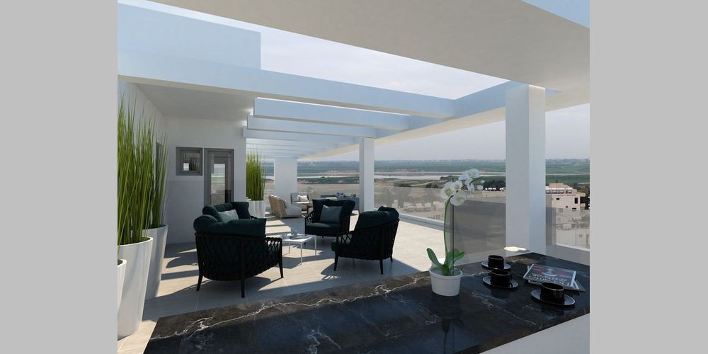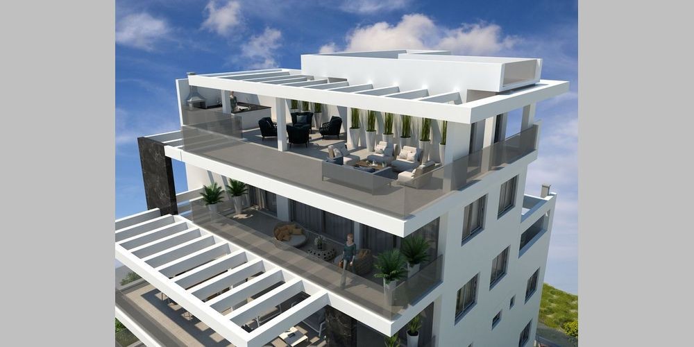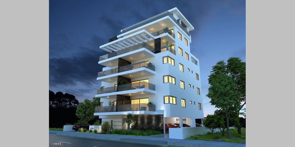 This modernistic complex is located in Saint George area, in Larnaca, less than 3 kilometers to the Larnaca Town Centre. All apartments of the building have spacious and contemporary living areas. There are two apartments per floor until the third floor, ensuring optimum privacy. The fourth floor apartment benefits from large covered and uncovered balconies with barbeque area and spacious living areas. The penthouse on the fifth floor has a bar and barbeque on the roof garden with additional room, toilet and panoramic views of the Salt Lake. Each apartment has one parking and a storage room on the ground level.
