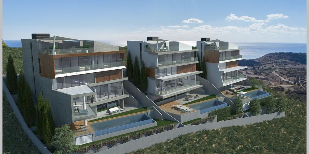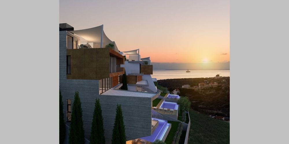 The three modern villas are situated to have a view to the Limassol Bay. They are developed of four levels. The villas’ design is based on bio- climatic architecture principles and viable development achieving a contemporary, smart and integrated design. The bedrooms are situated at the higher level of the villas, while the sitting area, the kitchen and the other rooms are at the below level. The fitness area, changing rooms, sauna and maid’s room are located at the lower level, which is the level of the courtyard. The roof of the villas has a roof garden functioning as an observation deck to enjoy the views, while simultaneously being fully unified with the environment.