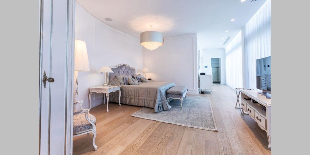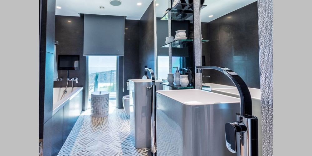 Second floor: Master bedroom with wardrobe and large bathroom, another 3 double bedrooms and 2 more bathrooms. All living spaces including bathrooms are offering panoramic sea views. The villa has VRV system and heated floors throughout. Title deeds available.