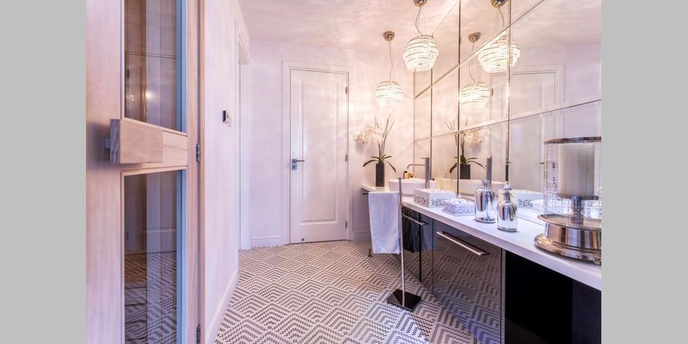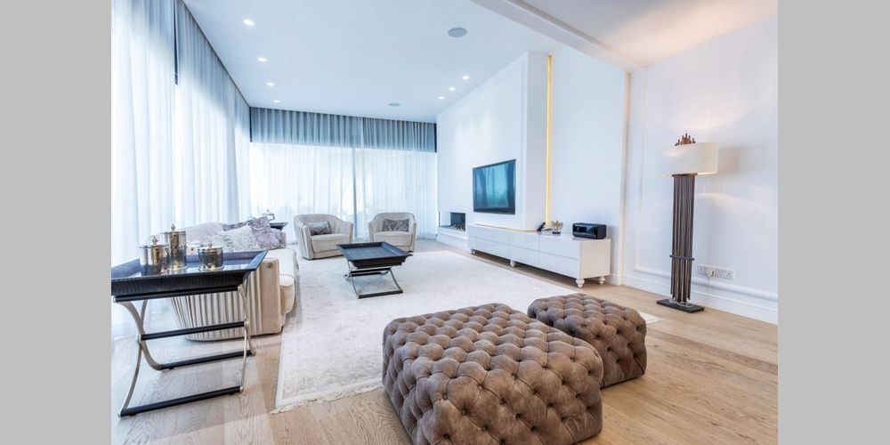 Ground floor: Beautiful spacious and bright living area with launch/bar and big bathroom with sauna and shower, guest WC, spacious office, GYM and maid's bedroom with bathroom. Additional laundry/kitchen with storage.