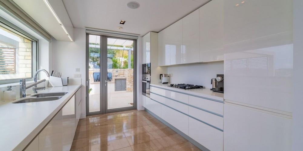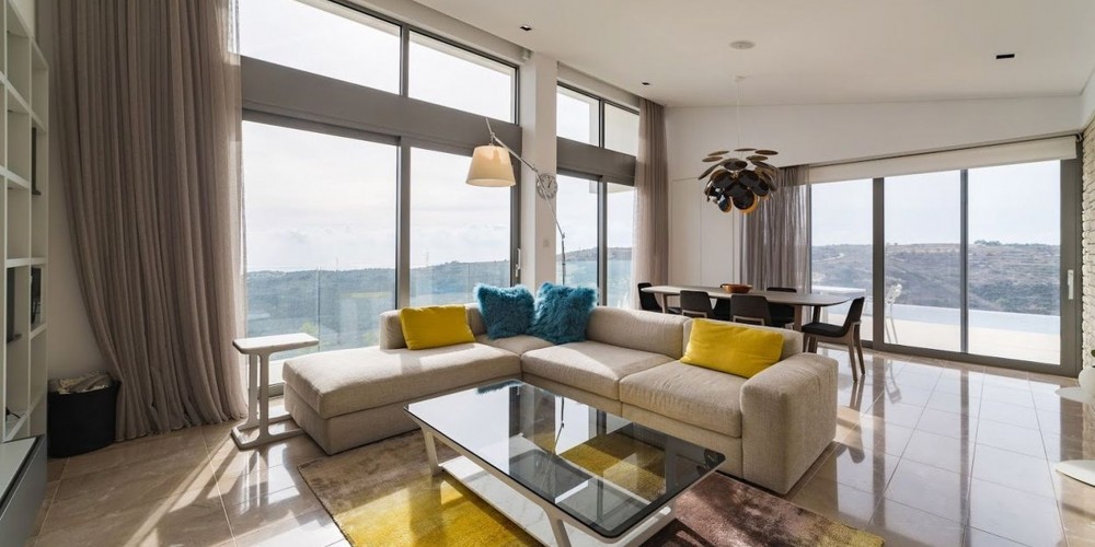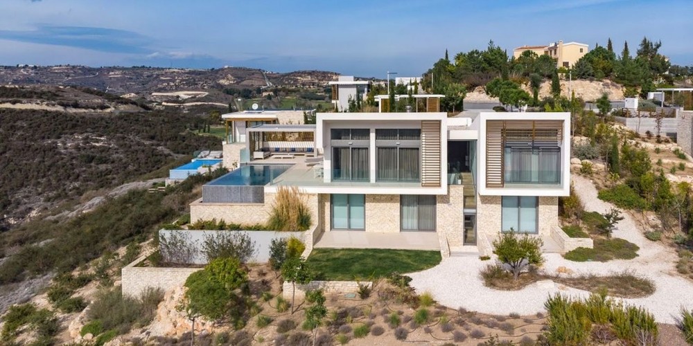 This 4 bedroom villa is located in an exclusive golf resort in Paphos. The villa was built 2 years ago, is fully furnished and ready for moving in. Situated on the biggest plot of the resort in a private and sea view location, this property is characterized by a unique custom made design, high quality finishes and construction, spacious airy interiors, floor-to-ceiling windows, cozy internal courtyard, private panoramic pool and outdoor dinning/BBQ area with wood oven. This home is very spacious and light with large, open-plan spaces and a kitchen that opens onto large patio and external outside area - perfect for entertainment. The master bedroom, pool and living space are on the main level, while 3 guest bedrooms and a sauna are on the floor below. The villa is elegantly furnished with Italian furniture and German appliances. The resort is famous for being located on a protected nature reserve with the cleanest air. It offers its own infrastructure, including a club house with a restaurant, a cafe, business facilities, pro shop and soon to join the project are a unique holistic wellness center and a village square with more dining and shopping facilities. The championship 18-hole golf course, gorgeous mountain and sea views, lovely properties and 5 star services make this resort the jewel of Cyprus.