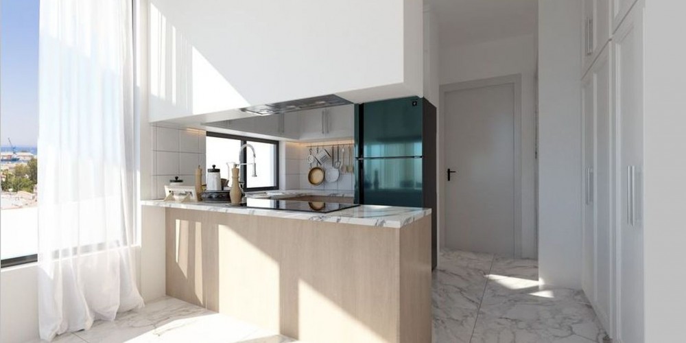 It is a block of eight apartments and invites comfort and modern elegance. Centrally located, not far from Finikoudes promenade and just a few hundred meters from the Larnaca New Marina, in an area going through a major upgrade. The development is close to self-serving shops, food stores and schools. Cleverly designed for supporting maximum privacy, the project boasts six 2-bedroom and two 3-bedroom apartments all with an en-suite, appealing floors and decorative ceilings flowing throughout each home’s open, airy layout. It features marble staircases, security tele-screen intercoms, private parking and storage room. Full energy efficiency standards are met through the quality management process during construction, ensuring environmental sustainability. The apartments on the third floor and floors above, enjoy delightful sea views whereas the top floor apartment prides itself on the rooftop terrace complemented with a swimming pool.