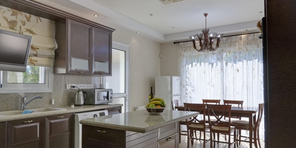 This 4 bedroom villa with the private swimming pool is located in the 24 hours secured complex. The sea is in 200 meters and close to all amenities. The complex itself has 2 common swimming pools and kids’ playground. The villa is fully furnished and equipped, a/c, central heating.