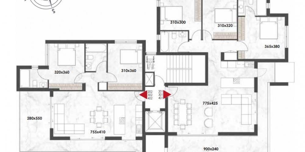 This project consists of four floors with eight apartments. Each floor has one one-bedroom and one two-bedroom apartment. All apartments have spacious open plan interior spaces and large terraces with beautiful views. The residence comprises spacious apartments with large interior spaces, bedrooms, balconies, parking and storage rooms.