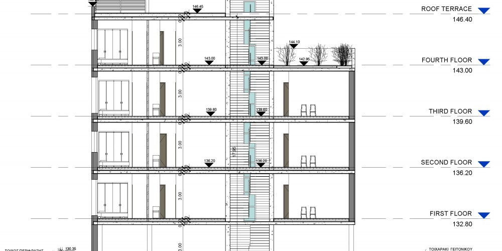 This project is situated in a quiet residential area of Paphos. This four storey complex consists of just 7 modern 1 and 2 bedroom apartments, with two apartments on each floor. The top floor is occupied by the only two bedroom penthouse with a large roof terrace offering stunning sea and mountain views. All living areas feature marble and wooden floors, handmade wooden kitchens and fitted wardrobes.