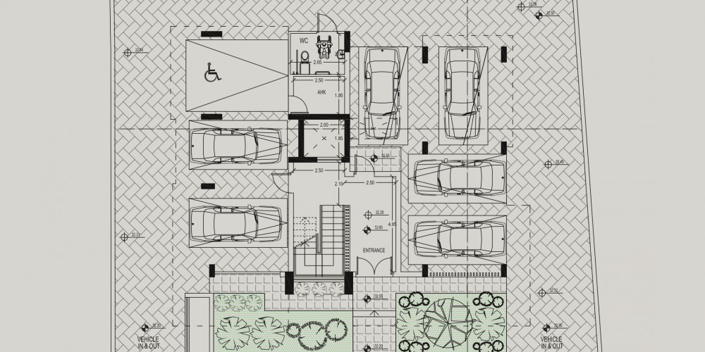 - One covered space for each flat in the ground floor with car charging provision infrastructure.