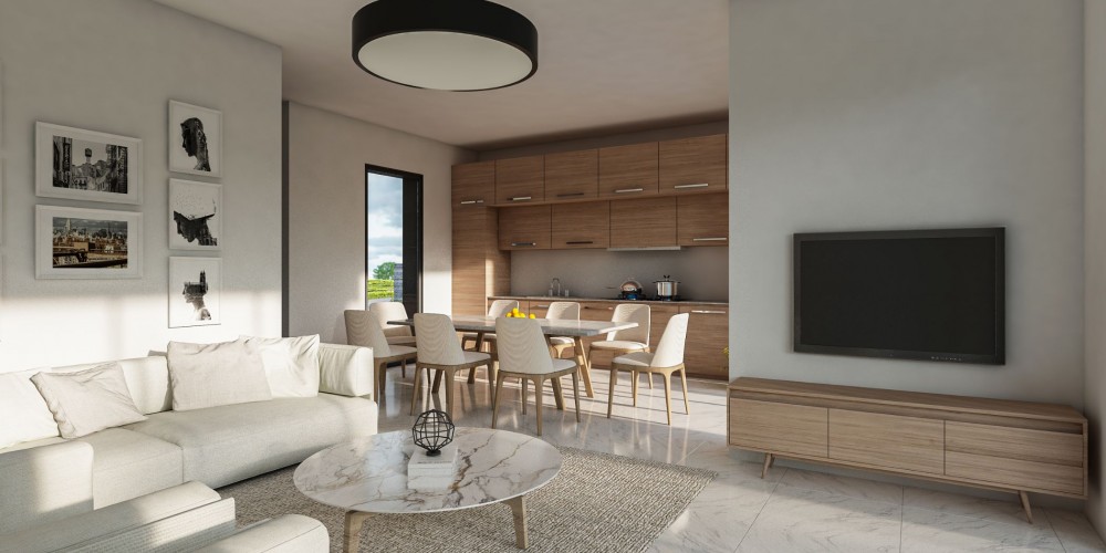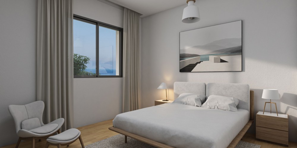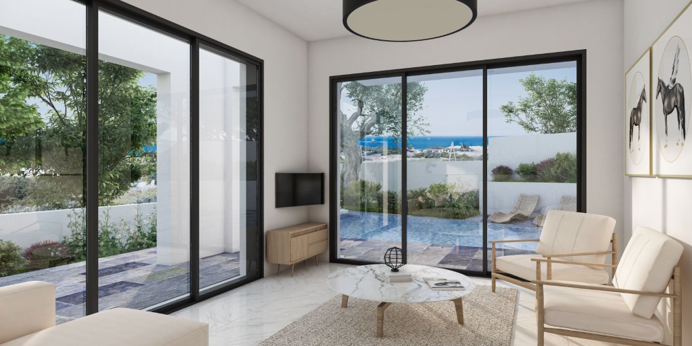 This unique development in the village of Choloraka on the outskirts of Paphos is characterized by appealing modern architecture with spacious and comfortable areas in green surroundings. These 3 bedroom villas for sale in Paphos ingeniously blend the use of white finishes and fair face concrete, with decorative walls also featuring concrete blocks. The location is blessed with picturesque sea views, a short walk to the beach and close to many local amenities.
