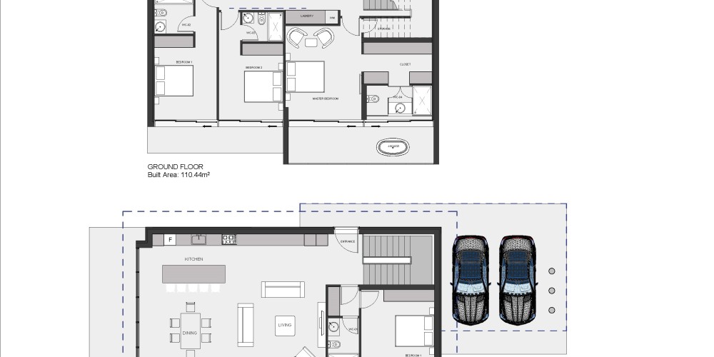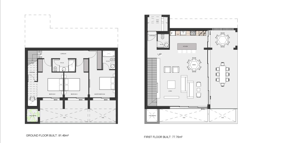 The properties are designed to take full advantage of the stunning views and natural surroundings, with large windows, lounge areas and an indoor-outdoor flow. The layout of the villas is also carefully considered, with the first floor dedicated to living space and parking for two cars, while the ground floor features spacious bedrooms. The outdoor areas are equally impressive with a large pool, outdoor BBQ, lounge and dining areas and landscaped gardens providing the perfect place to relax and entertain guests.