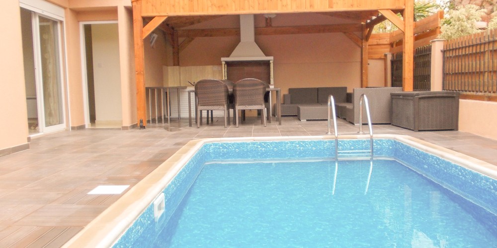 4W/C, A/C, C/H, F/F, TV, satellite antenna, separate kitchen, fireplace room, housekeeping room outside jacuzzi, BBQ, covered parking, swimming pool, 980 m from the sea.