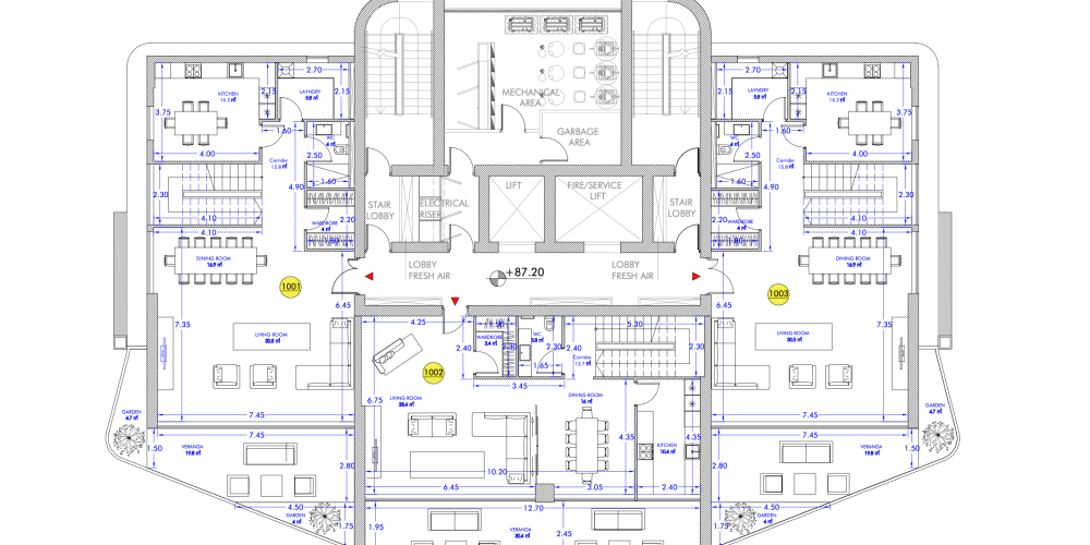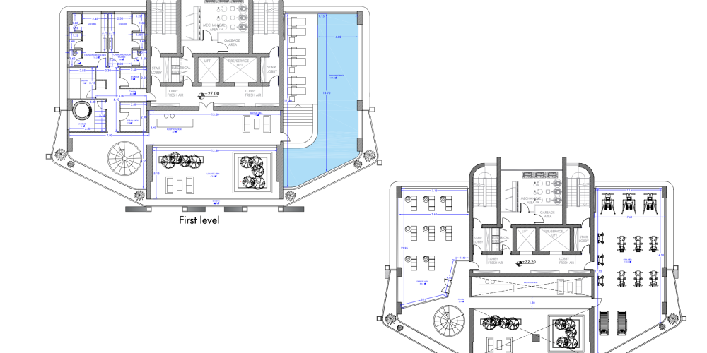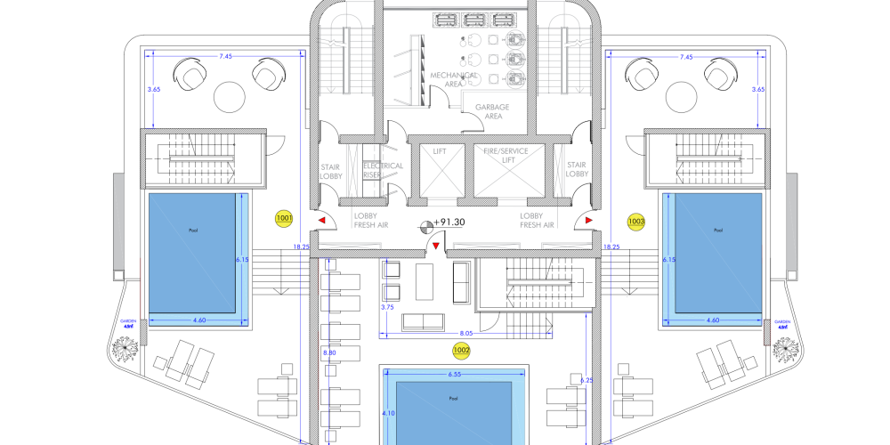 - On the 1st and 2nd floors of the building there is a spacious 2-story gym with world-class fitness equipment, 25-meter swimming pool, sauna, Jacuzzi.