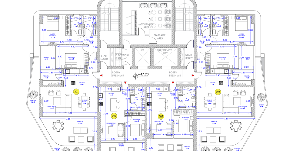 This exclusive project is located in a prestigious area of Limassol, in the heart of the tourist area, just a short walk from the beach. The project consists of 29 luxury apartments from the 4th to the 12th floor - all apartments have sea views, spacious balconies and on the upper floors there are 3 luxury penthouses with private pool, BBQ area and private garden.