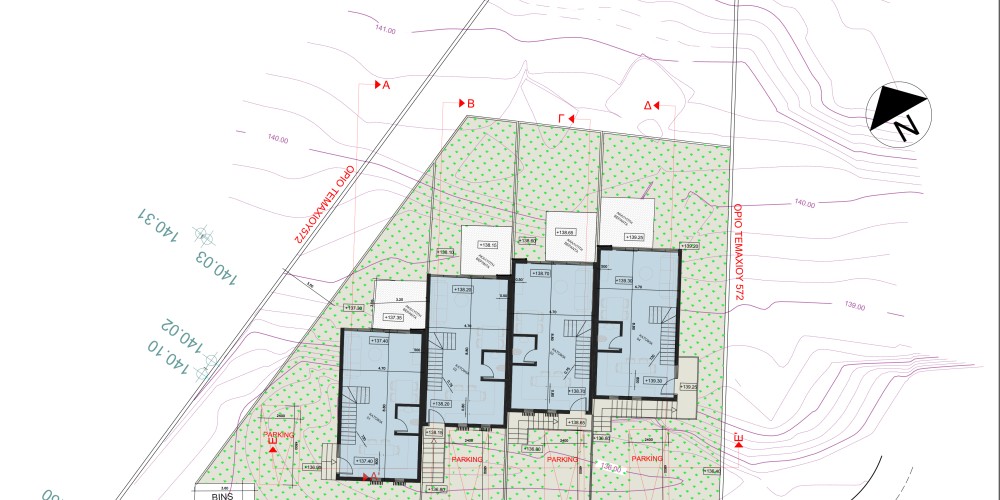This project is located on a green hill in Erimi, just a 10-minute drive from Limassol, surrounded by lush vegetation. It consists of 4 townhouses, each with a veranda, parking space, and landscaped garden. The village is only 3 minutes away from the main highways and offers easy access to a variety of infrastructure such as Alphamega supermarket, fitness centers, cafes, and educational institutions.