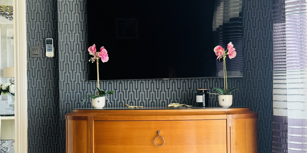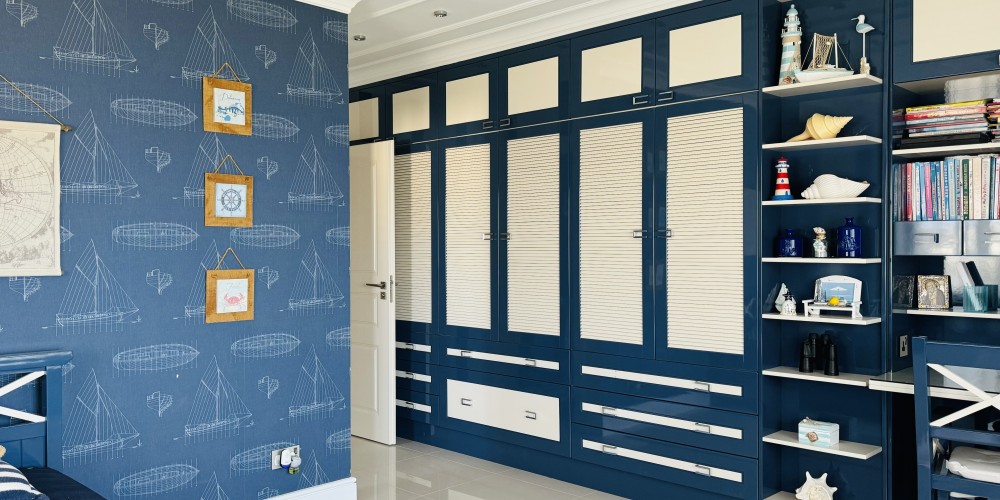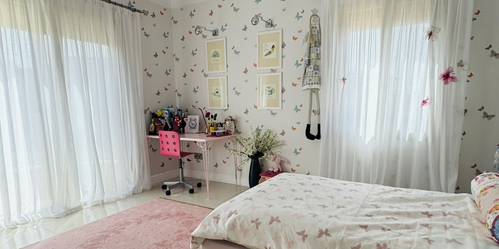 В доме предусмотрено пять спален и шесть ванных комнат, одна из которых дополнительно включает кладовую зону. Для персонала предусмотрена отдельная студия с собственным входом, кухней и ванной комнатой.