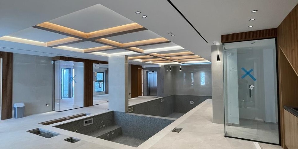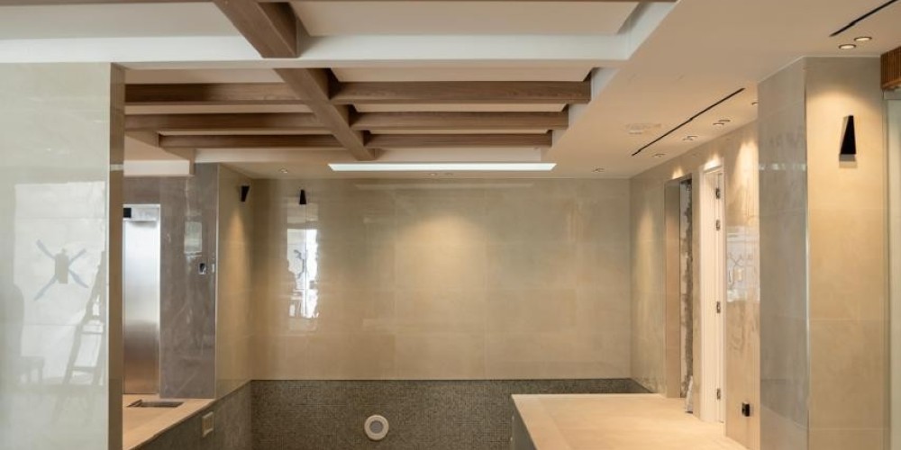 The house spans 4 floors, with large covered verandas and a rooftop garden with a BBQ area. It includes indoor and outdoor saltwater swimming pools (indoor is heated), a 10-person jacuzzi, and a spacious sauna. The property also features a gym, laundry room, 35 sqm playroom, home cinema with a 4K projector and audio system, and a server room.