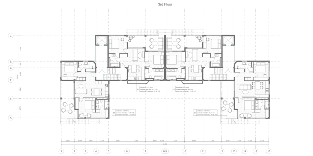 The complex includes 1- and 2-bedroom apartments, with the third floor offering stunning sea views. Amenities include a shared pool, parking spaces, and individual storage rooms for each apartment. The design and layout have been carefully crafted to provide residents with comfort, style, and modern conveniences.