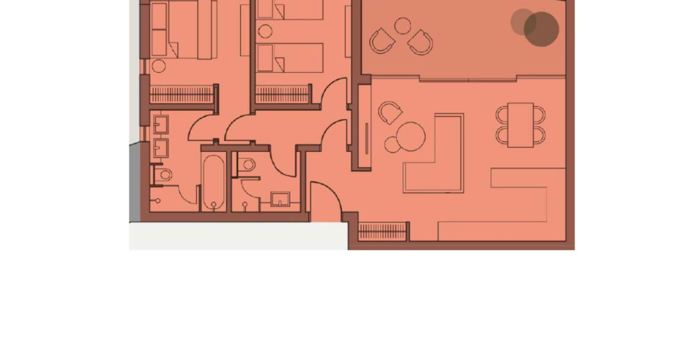 - Two apartment blocks with 26 units: two- and three-bedroom layouts plus penthouses.