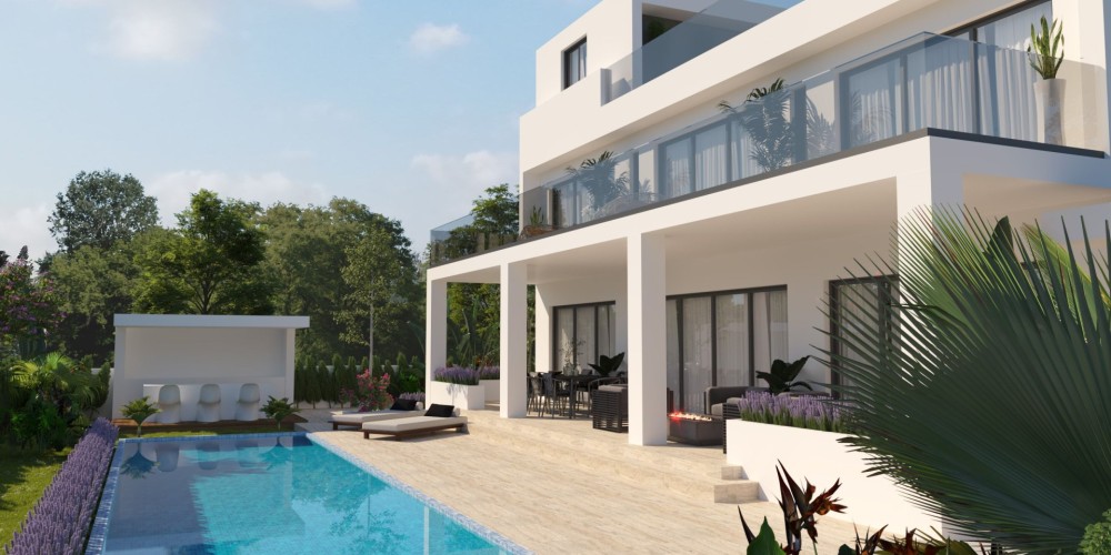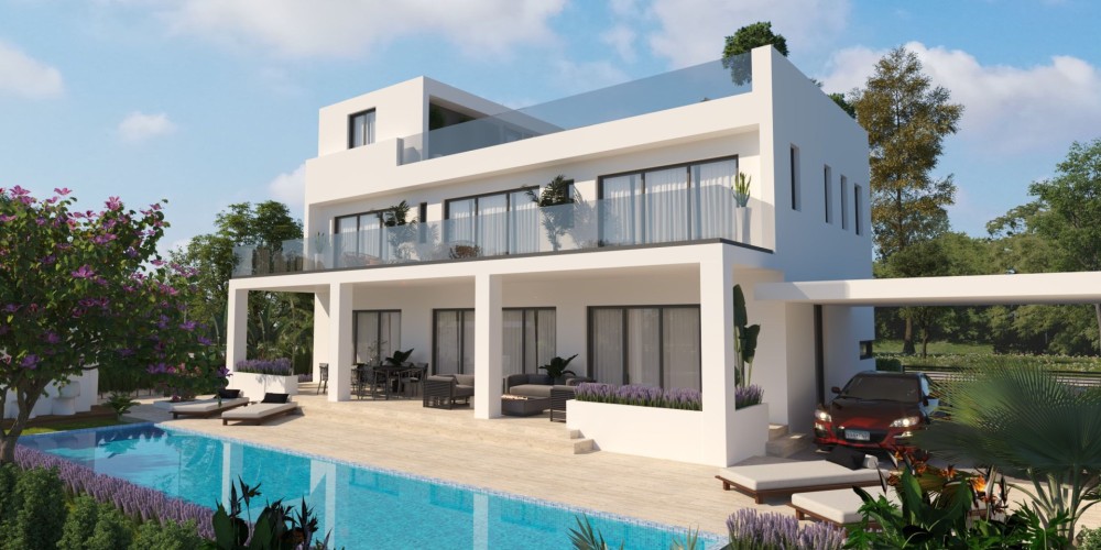 This 3-floor, 5-bedroom luxury villa in Oroklini, Larnaca, offers modern design, premium amenities, and stunning views. Set on a 600-square-meter plot, it features an open-plan kitchen with an island, a dining area, and a spacious living room. Outdoor spaces include verandas, a BBQ area, an outdoor shower, and a 13-meter swimming pool.