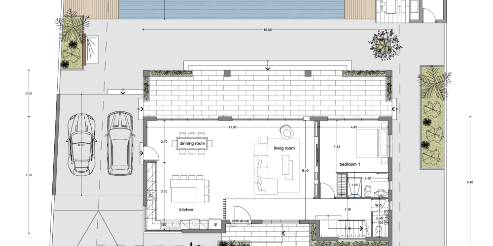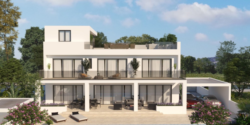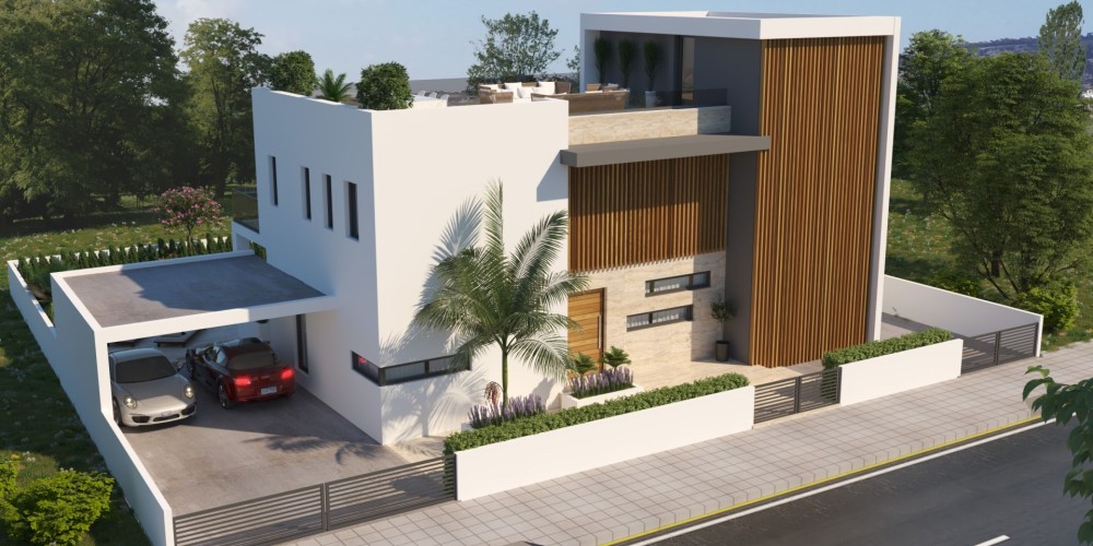 The first floor has spacious bedrooms, each with an en suite WC and shower. The roof garden includes sea views and an additional bedroom. Located near Oroklini Hills, the villa is within walking distance of local amenities and a short drive from Larnaca’s beaches, city center, and marina.