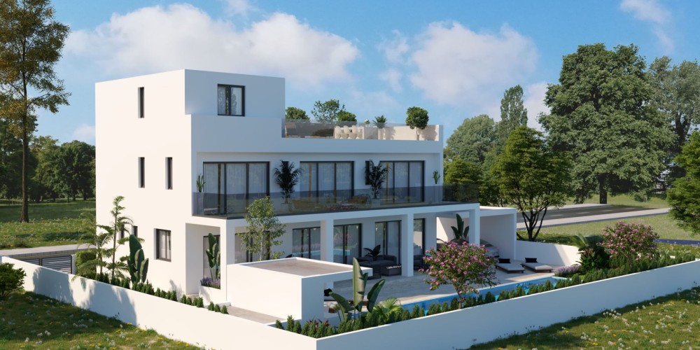 This 3-floor, 5-bedroom luxury villa in Oroklini, Larnaca, offers modern design, premium amenities, and stunning views. Set on a 600-square-meter plot, it features an open-plan kitchen with an island, a dining area, and a spacious living room. Outdoor spaces include verandas, a BBQ area, an outdoor shower, and a 13-meter swimming pool. The fir...