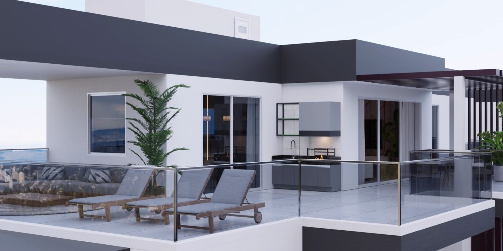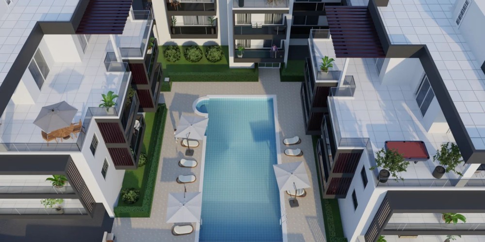 The complex is a modern three-story development built to high standards with premium-quality finishes. It consists of three separate buildings with a swimming pool at the center. The project features 21 apartments: 6 one-bedroom units, 12 two-bedroom units, and 3 penthouses with spacious terraces, offering the option to install a jacuzzi or a private pool. All apartments boast a well-thought-out layout, large balconies, storage rooms, and a covered parking space for each unit.
