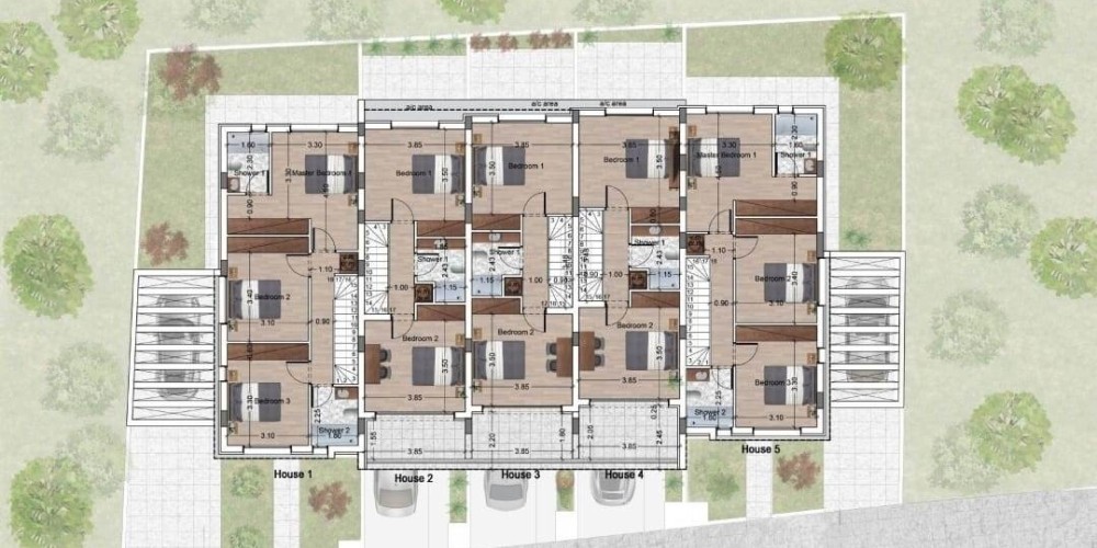 - Two 3-bedroom double-story houses