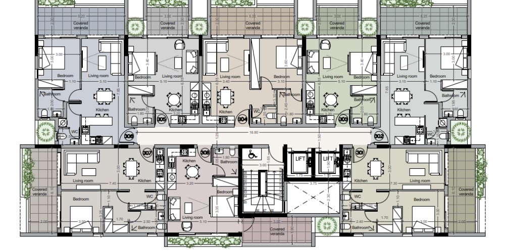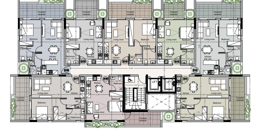 This modern residential development in Larnaca consists of three floors with a total of 24 apartments, each featuring a spacious balcony. Residents will have access to a shared rooftop garden, a swimming pool, and a lounge area.