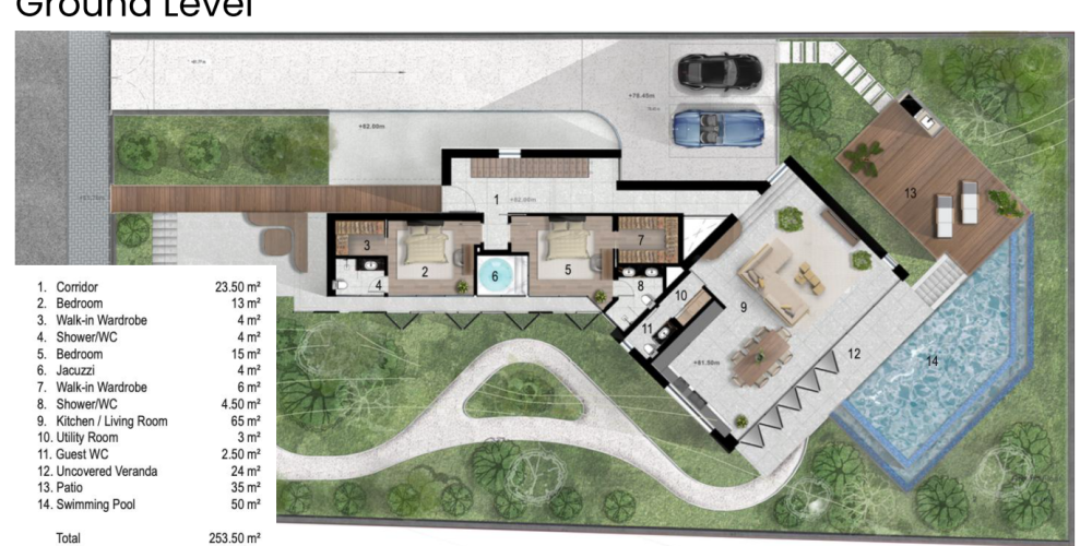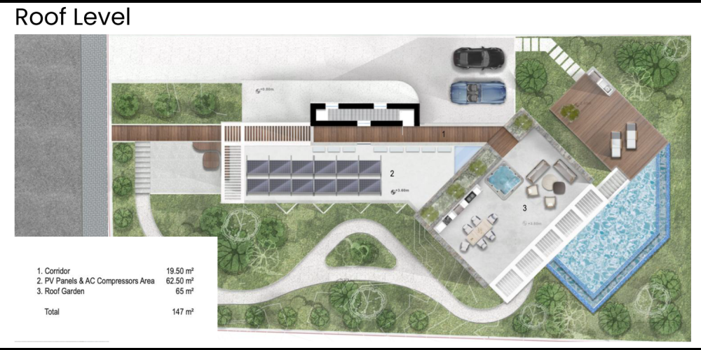 The outdoor space includes an infinity pool, a covered patio for alfresco dining, and a landscaped garden. Located minutes from Sea Caves, TLC School, and Coral Bay, the villa provides both privacy and convenience. Smart home provisions, energy-efficient systems, and high-quality finishes enhance the living experience.