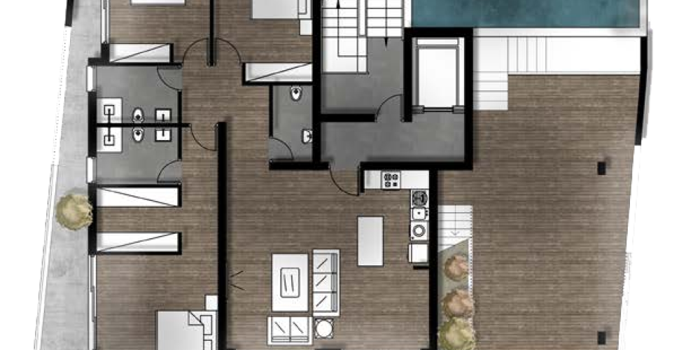 - 1- and 2-bedroom apartments, plus a penthouse with a roof garden