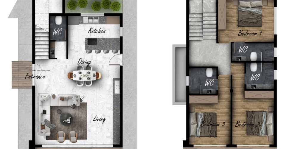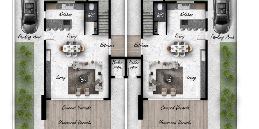 This project offers a collection of 10 detached villas designed for a comfortable lifestyle. Each three-bedroom villa features a private garden, spacious outdoor areas, and a swimming pool. Floor-to-ceiling windows enhance the sense of openness, blending indoor and outdoor spaces seamlessly. High-quality building and finishing materials ensure durability and style.