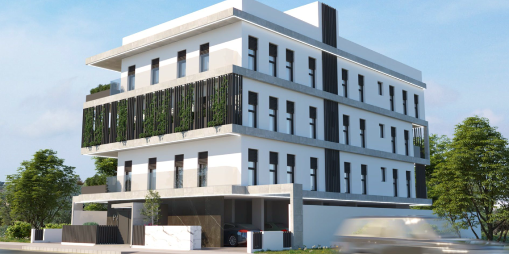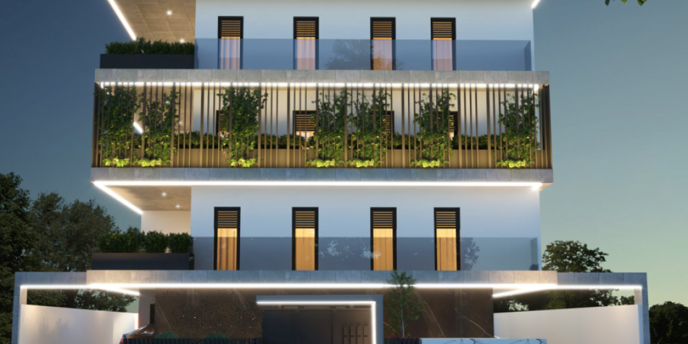This residential development is located in the heart of Strovolos and consists of three levels with a ground floor featuring covered parking and dedicated storage for all residents. The project includes eight apartments with floor-to-ceiling windows that maximize natural light. It offers 2-bedroom units and a 3-bedroom penthouse with spacious covered verandas and a private roof terrace overlooking the city.