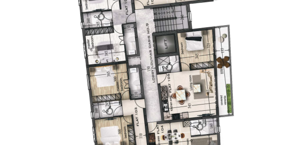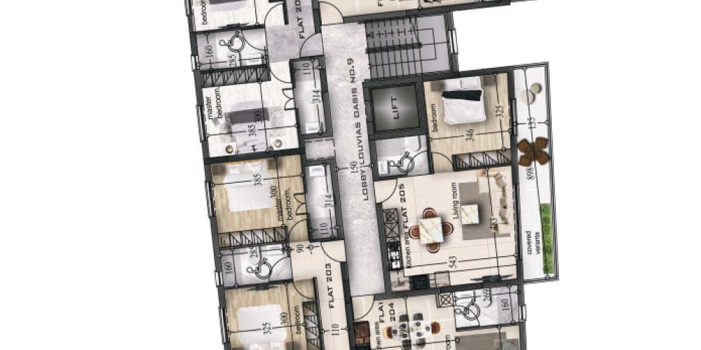 Conveniently located, the project is just 1.2 km from the highway, 3.9 km from the sea, and within easy reach of schools, supermarkets, and medical facilities. With provisions for electric cars and a dedicated kid’s playroom, this development is designed to meet the needs of both individuals and families.