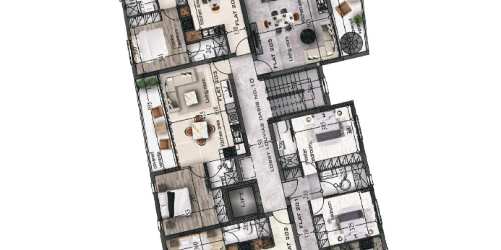 Conveniently located, the project is just 1.2 km from the highway, 3.9 km from the sea, and within easy reach of schools, supermarkets, and medical facilities. With provisions for electric cars and a dedicated kid’s playroom, this development is designed to meet the needs of both individuals and families.