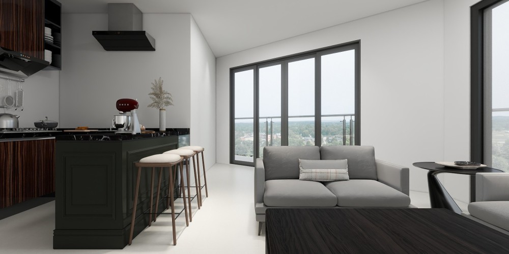All apartments are delivered ready for occupancy, complete with appliances and furnishings from well-known brands. Appliances include Midea air conditioning units, washing machines, and dishwashers; Bosch cooktop and hood; Bloomberg refrigerator; and Samsung TVs.