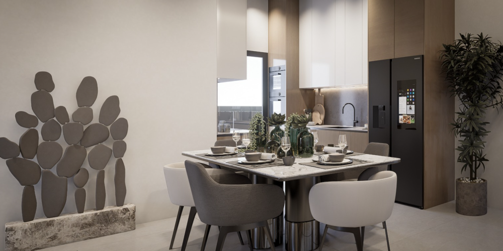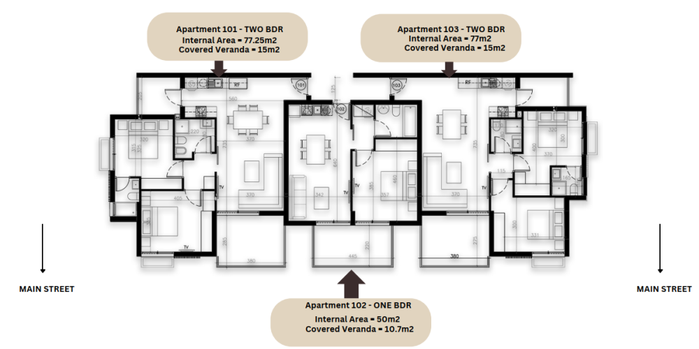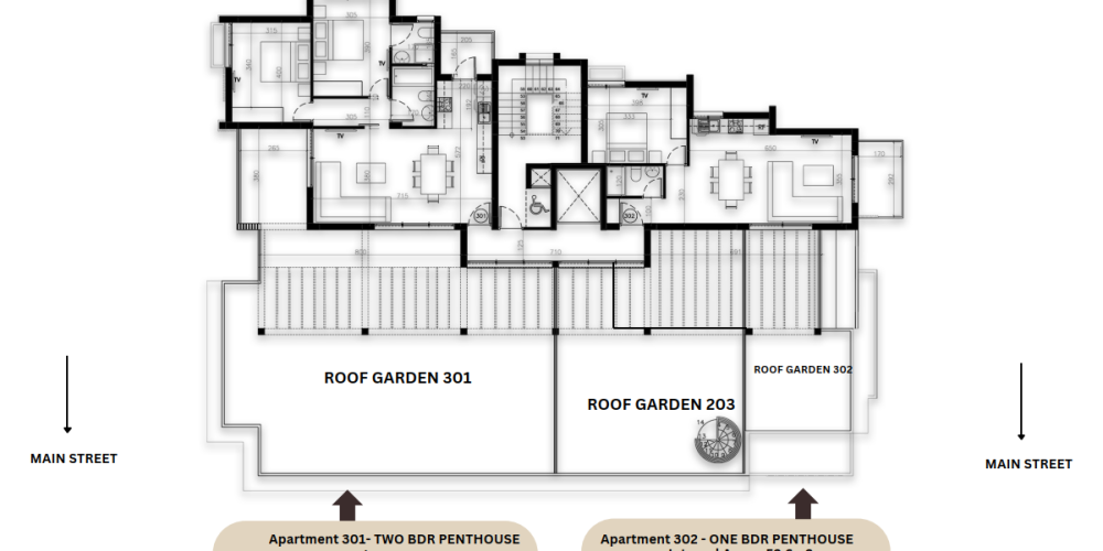 The project comprises a residential building with ten thoughtfully designed apartments and three separate villas. The apartment building includes a mix of one- and two-bedroom units, with penthouses featuring private roof gardens and views of the surrounding area. Each apartment comes with a private storage room and dedicated parking space.