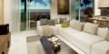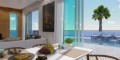 The villas feature open-plan layouts on the ground floor, combining kitchen, dining, and living areas with views toward private overflow pools. Large thermal and sound-insulated floor-to-ceiling glass doors enhance the connection between indoor and outdoor spaces. Select villas also include a ground-floor bedroom and guest WC.