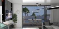 The upper floor accommodates three or four bedrooms, including a master bedroom with en-suite shower, a shared family bathroom, and a laundry room. A rooftop lounge with panoramic sea views adds an additional outdoor living area, while optional basements are available to expand the space further.