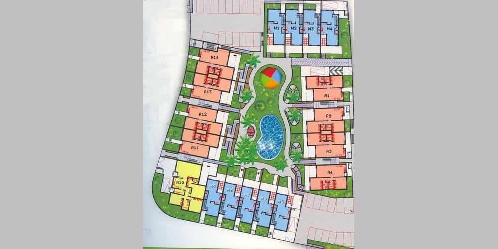 Ground-floor of townhouses and apartments incorporates gardens. The property complex area has a large heated swimming pool and landscape garden.