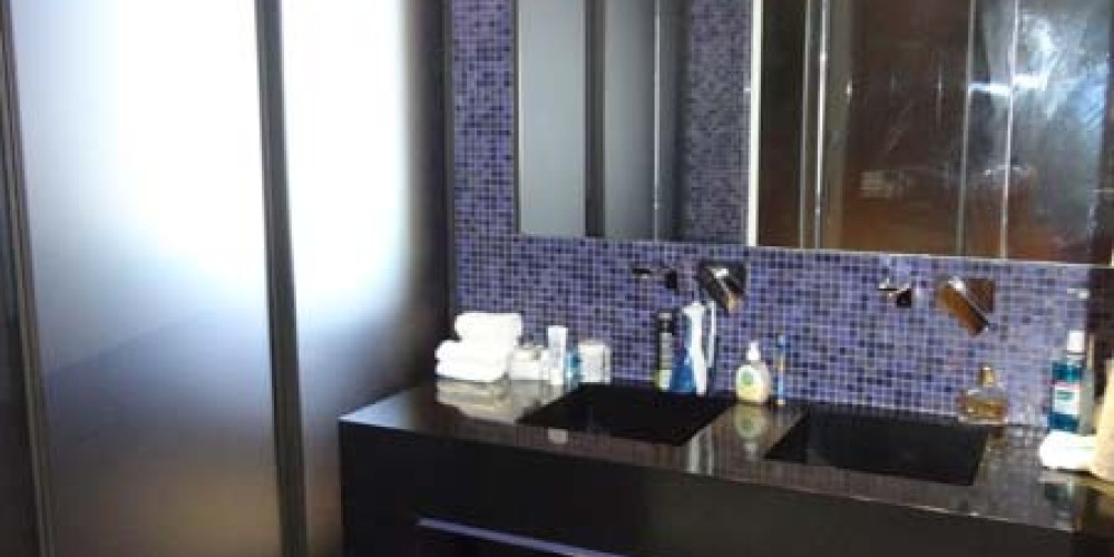 - Rooftop terrace with panoramic views, bar, and marble seating