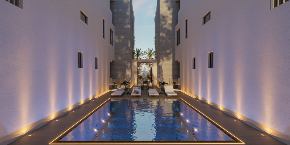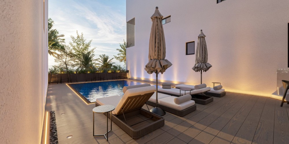 Located in a quiet residential area, this gated development consists of two contemporary buildings, each comprising 14 thoughtfully designed apartments. The project combines modern architectural elements with functional amenities, offering residents a private and comfortable living environment. Shared facilities include a communal pool area and a landscaped green space for residents' use.