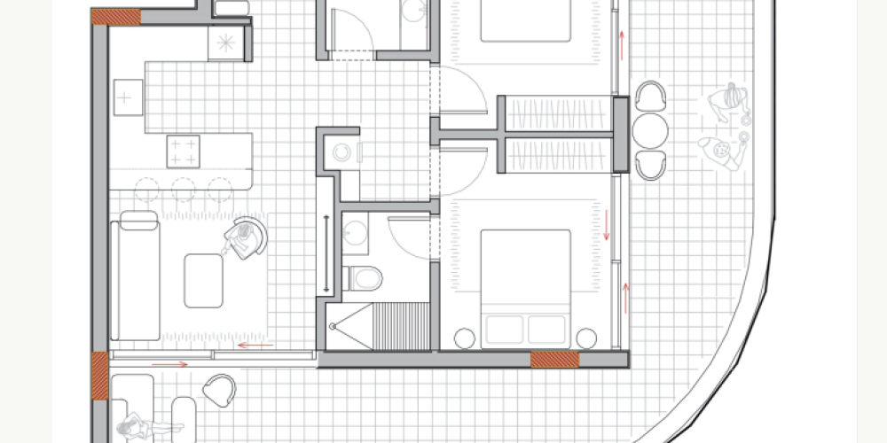 The design prioritizes both visual appeal and functional planning, beginning with a well-designed lobby and extending to thoughtfully laid-out living spaces in each unit. The development features a range of shared amenities such as smart building systems, a concierge station, a co-working area, and an underground parking facility. Three elevators serve the buildings, and a landscaped urban piazza adds to the communal space.