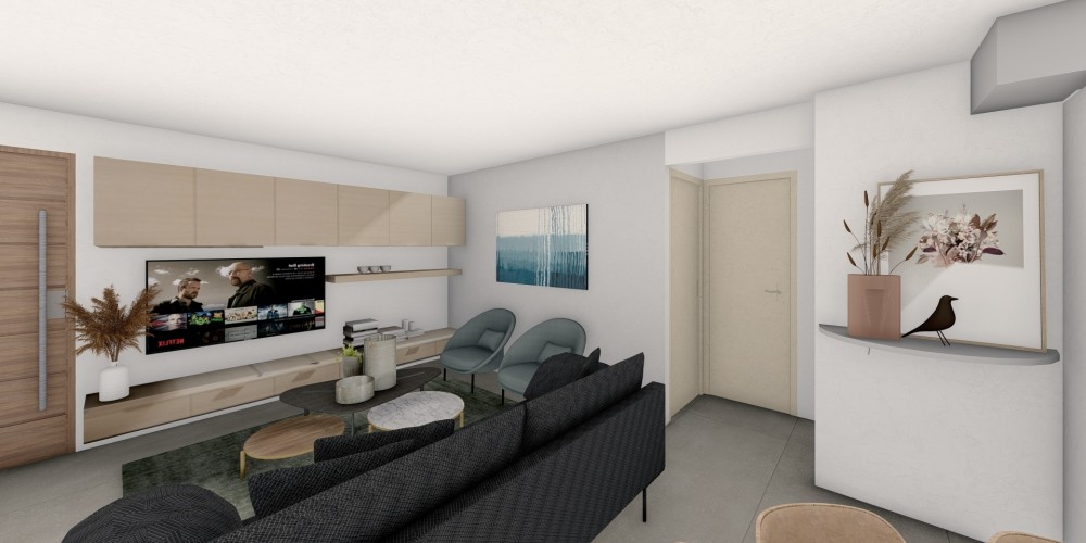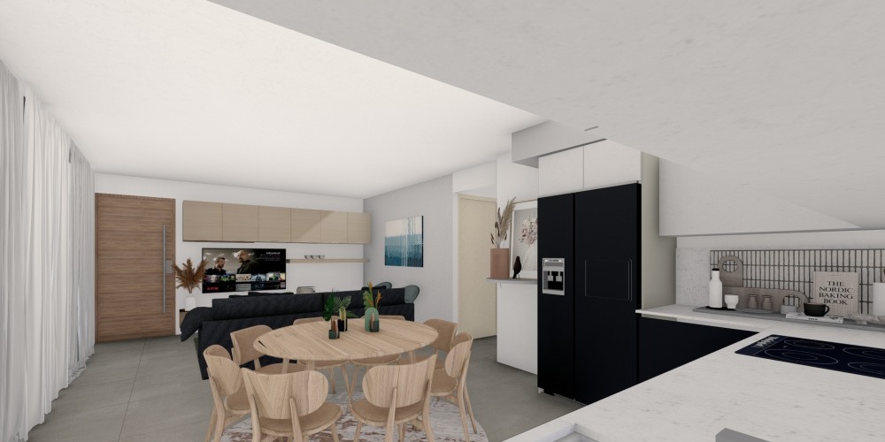The project is engineered for comfort and sustainability. All apartments will be fitted with heating and cooling systems based on a detailed engineering study, including underfloor heating powered by a heat pump. The two- and three-bedroom units will also have a 3 kW photovoltaic system installed to promote energy savings.