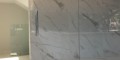 The apartment spans 118 m² of covered space and includes a guest WC, one master bedroom with an en-suite bathroom, and two additional double bedrooms, each with their own en-suite. The layout features an open-plan kitchen and living area, finished with natural materials such as marble, granite, and real wood floors.