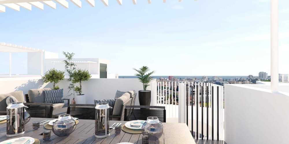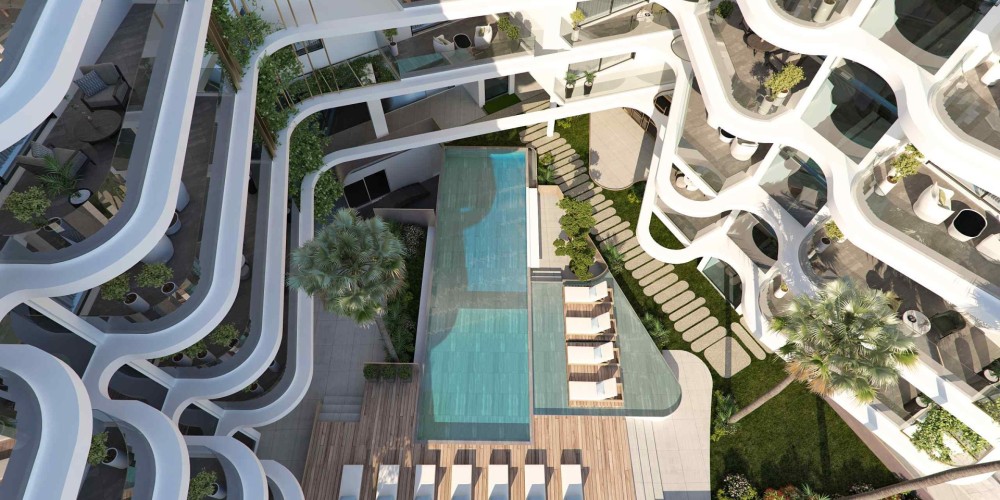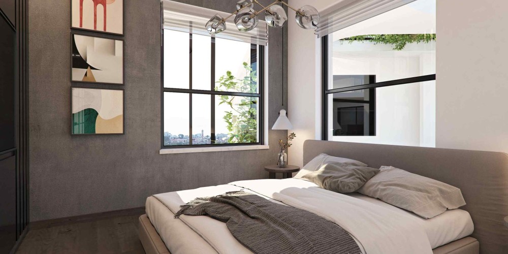 The development consists of 33 one- and two-bedroom apartments with internal areas ranging from 50 m² to 80 m². Each unit is designed with efficient layouts and includes balconies or roof gardens of 20 m² to 55 m², with total areas reaching up to 155 m². Interiors are finished with durable, high-quality materials, featuring built-in kitchens and wardrobes, floor-to-ceiling windows, and large-format tiles by well-known international brands.