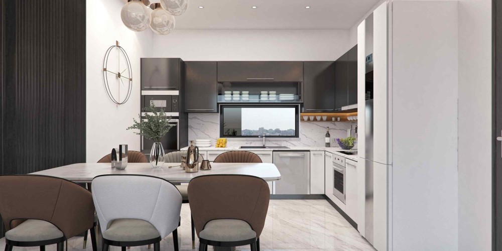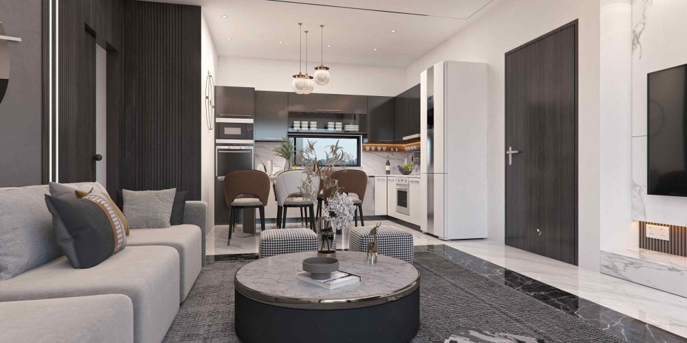 The building incorporates eco-conscious technologies to enhance energy efficiency while providing residents with comfort and convenience. Interior planning prioritizes seamless living spaces, with integrated dining and living areas, false ceilings with discreet lighting, and furnishings selected for both practicality and modern aesthetics.