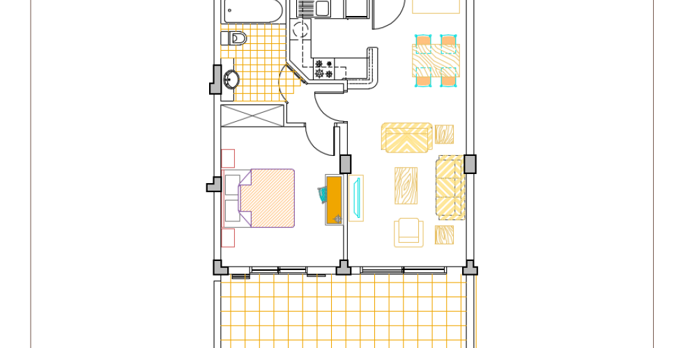 This apartment is located on the ground floor within a residential complex offering a mix of apartments, penthouses, maisonettes, and villas. The unit includes a living room, dining area, kitchen, one bedroom, and one bathroom, along with a spacious covered veranda. The apartment comes with an allocated parking space and access to the complex’s communal amenities.